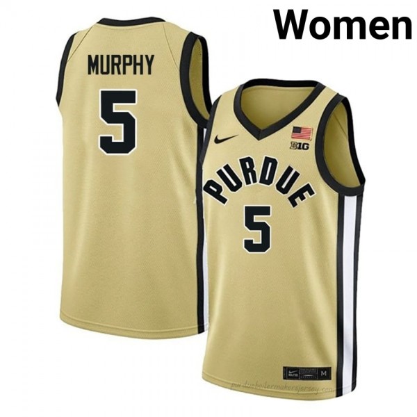 Purdue Boilers Liam Murphy #5 Gold Jersey | Women Premium NCAA Basketball Fan Apparel 87877452